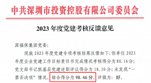 近日,投控公司2023年度直属企业党组织党建专项考核结果出炉,乐鱼集团党委综合得分98.46分,在投控公司党委年度党建专项考核中名列前五。这表明,集团高质量党建引领企业高质量发展取得显著成效,得到了投控公司党委的持续肯定和认可。