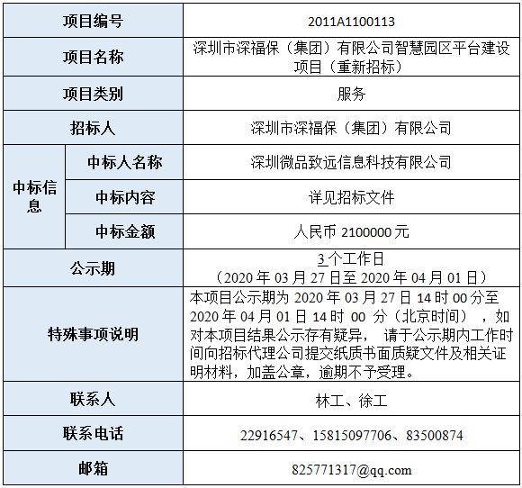 经深圳市国际招标有限公司组织招标的深圳市乐鱼(集团)有限公司智慧园区平台建设项目(重新招标)已完成评审,现将本项目评审的相关情况及结果进行公示,具体内容如下: