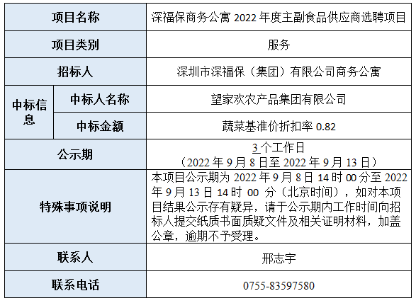 乐鱼商务公寓2022年度主副食品供应商选聘项目已完成评审,现将本项目评审的相关情况及结果进行公示,具体内容如下: