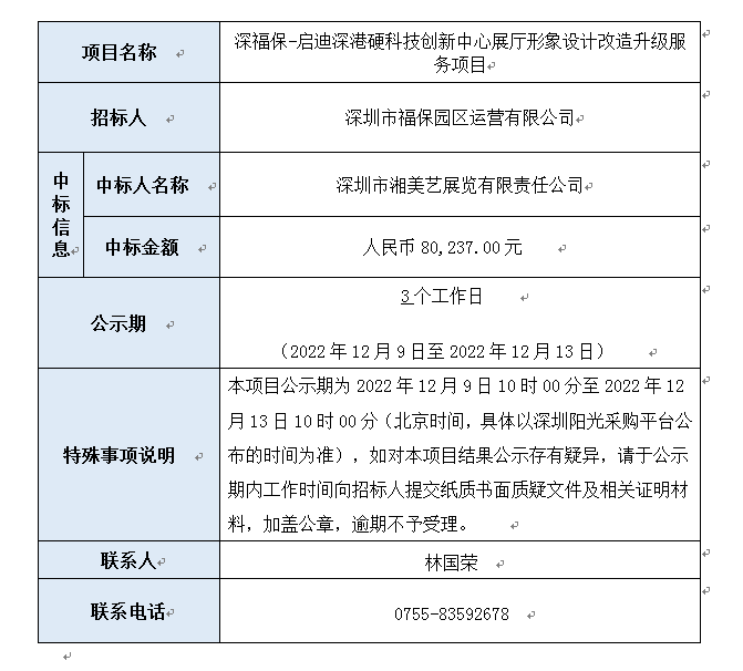 园区公司关于乐鱼-启迪深港硬科技创新中心展厅形象设计改造升级服务项目已完成评审,现将本项目评审的相关情况及结果进行公示,具体内容如下: