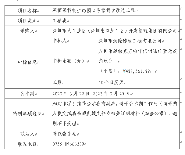 在深圳市建设工程材料设备询价采购平台进行公开招标的乐鱼科技生态园2号楼货台改造工程(项目编号:SZXJCG-S202302240005)已完成评审及定标,现将本项目评审的相关情况及定标结果进行公示,具体内容如下: