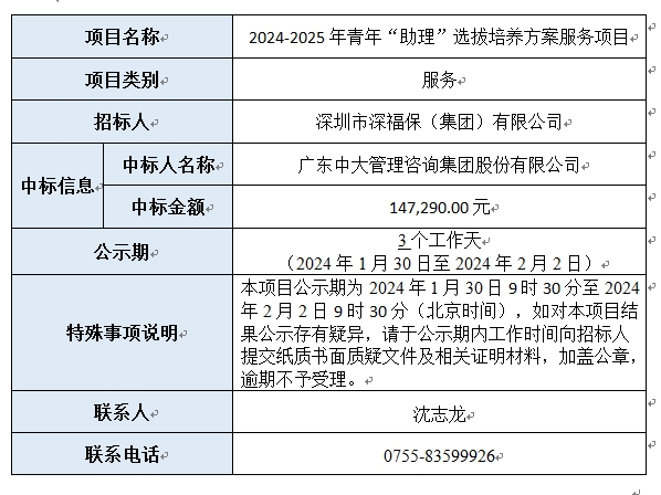 2024-2025年青年“助理”选拔培养方案服务项目已完成评审,现将本项目评审的相关情况及结果进行公示,具体内容如下: