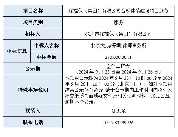 深圳市乐鱼(集团)有限公司合规体系建设项目服务已完成评审,现将本项目评审的相关情况及结果进行公示,具体内容如下: