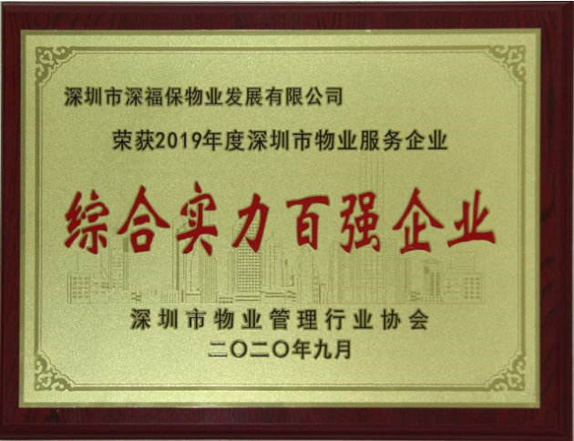 2020年9月25日,深圳市物业管理行业协会正式发布了备受行业瞩目“2019年度深圳市物业服务企业综合实力百强”企业名单物业公司荣膺“2019年度深圳市物业服务企业综合实力百强”称号