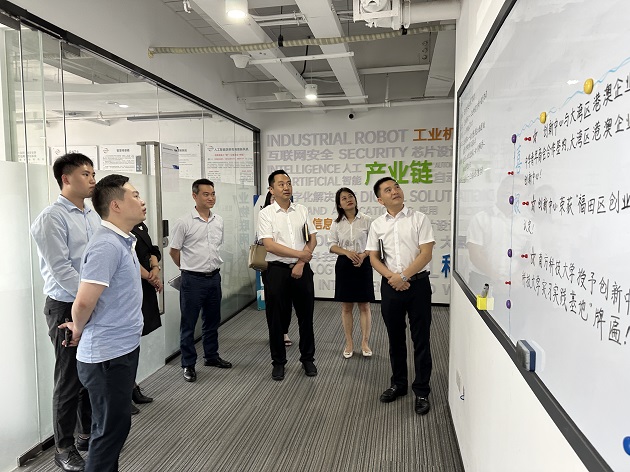 5月9日上午,深圳市公共就业服务中心副主任黄长安、福田区人力资源局副局长刘志明调研走访乐鱼-启迪深港硬科技创新中心。