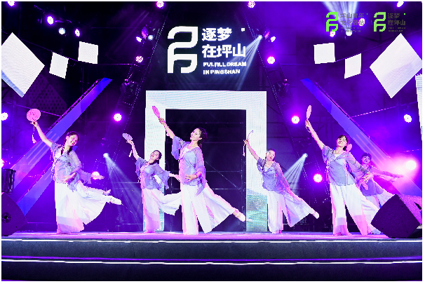 活动以舞蹈表演为开场,引入器乐合奏、劲歌热舞、管弦乐、趣味魔术等多元化才艺表演,充分展现了坪山青年的多才多艺和创新精神。与此同时,“燃脂舞”和“书法培训”两门公益课程也在坪山生物医药创新产业园开班,“燃脂舞”班学员更为本次启幕活动献上了最后的压轴表演。本次启幕仪式也拉开了2022“逐梦在坪山”青年风采文化周的大幕,接下来,包括青年歌手大赛、舞蹈比赛、朗诵比赛、美术、书法、手机摄影展览在内的众多活动将深入到坪山的各街道社区巡回展演。