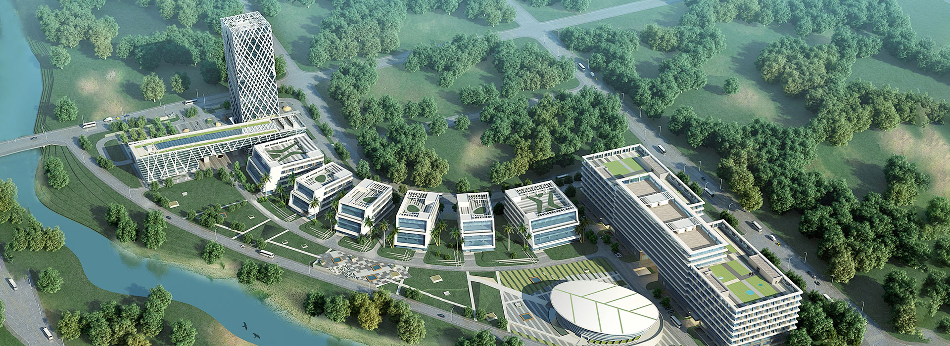 园区占地面积12.3万㎡,总建筑面积22万㎡,共10栋建筑。建成物业包括厂房、研发办公、公共平台、公共会议中心、食堂等生产研发办公和商务休闲空间。
